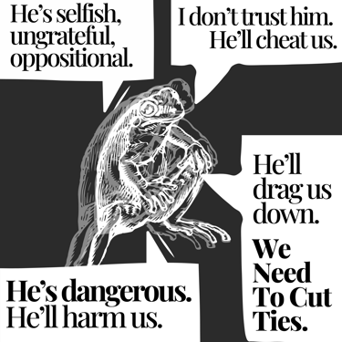 So they resent the offending kin for the shame of their familial association.